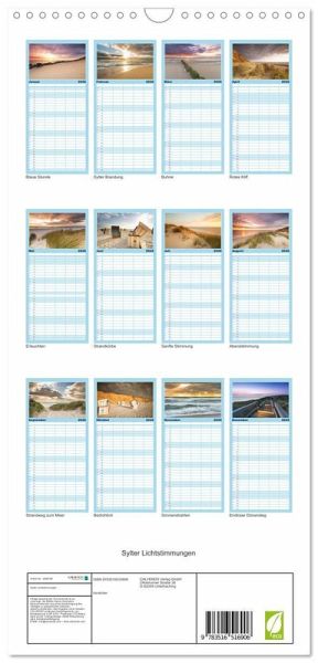 sonen für mehr Struktur im Alltag - so bleiben alle Termine im Blick!ÜBERSICHTLICH - mit farblich getrennten Wochen- und Feiertagen. Die einzelnen Felder bieten genügend Platz für Eintragungen. So macht Organisieren Spaß!FANTASTISCHE BILDER - Dieser Planer ist nicht nur eine nützliche Hilfe im Alltag, sondern schmückt gleichzeitig Ihr Zuhause. Ideal auch als Geschenk.FÜR ALLE STIFTE GEEIGNET - ganz egal, ob Sie lieber mit Kugelschreiber oder Bleistift schreiben.NACHHALTIG - deutliche Abfallreduzierung durch bedarfsgerechte Einzelstückfertigung, umweltfreundliches FSC-zertifiziertes Papier, Produktion in Deutschland, klimabewusste Logistik.Lichtstimmungen auf Sylt von Autor(in): Nordbilder Fotografie aus Leidenschaft