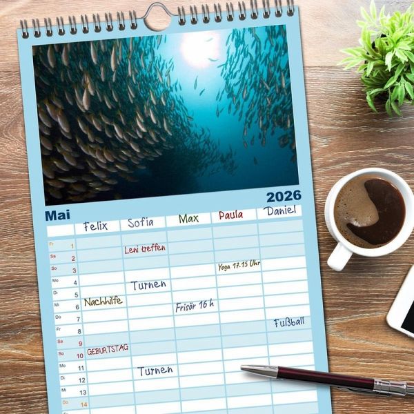 PRAKTISCH - übersichtlicher Familienkalender mit 5 Spalten für bis zu 5 Personen für mehr Struktur im Alltag - so bleiben alle Termine im Blick!ÜBERSICHTLICH - mit farblich getrennten Wochen- und Feiertagen. Die einzelnen Felder bieten genügend Platz für Eintragungen. So macht Organisieren Spaß!FANTASTISCHE BILDER - Dieser Planer ist nicht nur eine nützliche Hilfe im Alltag, sondern schmückt gleichzeitig Ihr Zuhause. Ideal auch als Geschenk.FÜR ALLE STIFTE GEEIGNET - ganz egal, ob Sie lieber mit Kugelschreiber oder Bleistift schreiben.NACHHALTIG - deutliche Abfallreduzierung durch bedarfsgerechte Einzelstückfertigung, umweltfreundliches FSC-zertifiziertes Papier, Produktion in Deutschland, klimabewusste Logistik.Unterwasserimpressionen von Autor(in): Sven Gruse