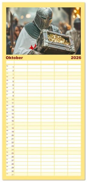 PRAKTISCH - übersichtlicher Familienkalender mit 5 Spalten für bis zu 5 Personen für mehr Struktur im Alltag - so bleiben alle Termine im Blick!ÜBERSICHTLICH - mit farblich getrennten Wochen- und Feiertagen. Die einzelnen Felder bieten genügend Platz für Eintragungen. So macht Organisieren Spaß!FANTASTISCHE BILDER - Dieser Planer ist nicht nur eine nützliche Hilfe im Alltag, sondern schmückt gleichzeitig Ihr Zuhause. Ideal auch als Geschenk.FÜR ALLE STIFTE GEEIGNET - ganz egal, ob Sie lieber mit Kugelschreiber oder Bleistift schreiben.NACHHALTIG - deutliche Abfallreduzierung durch bedarfsgerechte Einzelstückfertigung, umweltfreundliches FSC-zertifiziertes Papier, Produktion in Deutschland, klimabewusste Logistik.Tapfere Ritter von Autor(in): Liselotte Brunner-Klaus