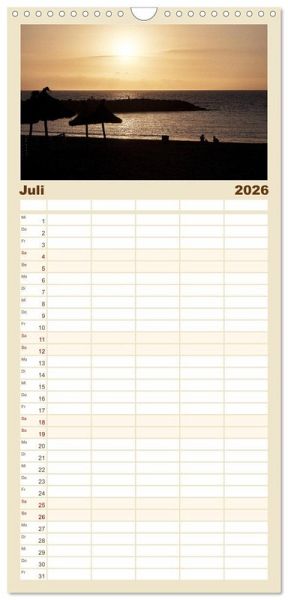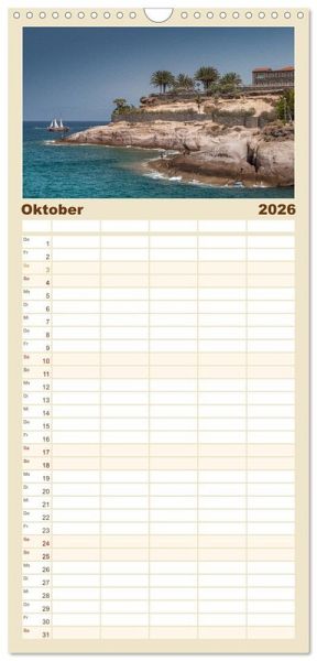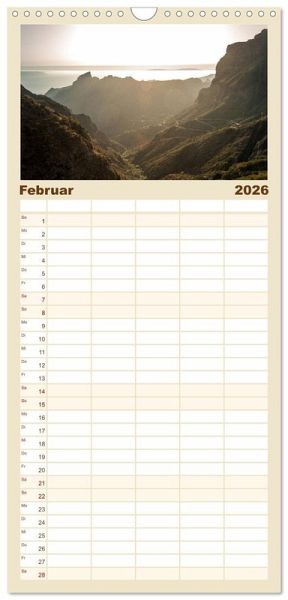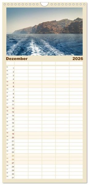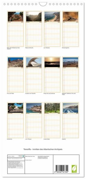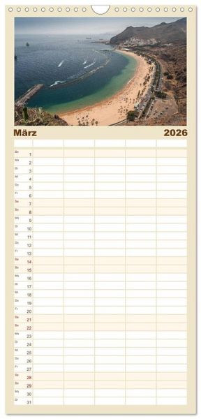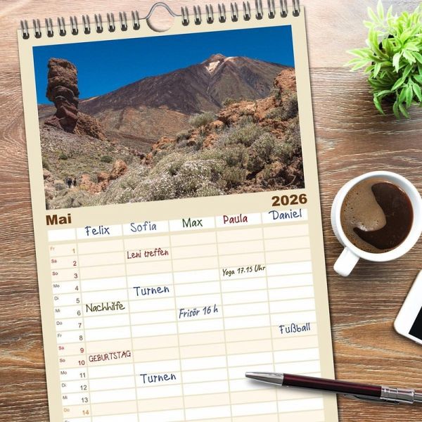 PRAKTISCH - übersichtlicher Familienkalender mit 5 Spalten für bis zu 5 Personen für mehr Struktur im Alltag - so bleiben alle Termine im Blick!ÜBERSICHTLICH - mit farblich getrennten Wochen- und Feiertagen. Die einzelnen Felder bieten genügend Platz für Eintragungen. So macht Organisieren Spaß!FANTASTISCHE BILDER - Dieser Planer ist nicht nur eine nützliche Hilfe im Alltag, sondern schmückt gleichzeitig Ihr Zuhause. Ideal auch als Geschenk.FÜR ALLE STIFTE GEEIGNET - ganz egal, ob Sie lieber mit Kugelschreiber oder Bleistift schreiben.NACHHALTIG - deutliche Abfallreduzierung durch bedarfsgerechte Einzelstückfertigung, umweltfreundliches FSC-zertifiziertes Papier, Produktion in Deutschland, klimabewusste Logistik.Der Kalender bringt die Insel Teneriffa als größte und abwechslungsreichste Insel der Kanaren zu Ihnen nach Hause. von Autor(in): Christian Kuhnert