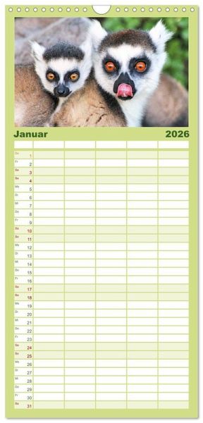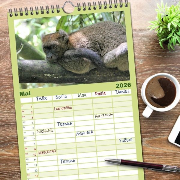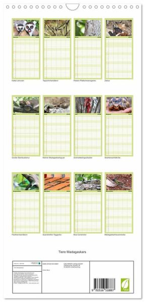 PRAKTISCH - übersichtlicher Familienkalender mit 5 Spalten für bis zu 5 Personen für mehr Struktur im Alltag - so bleiben alle Termine im Blick!ÜBERSICHTLICH - mit farblich getrennten Wochen- und Feiertagen. Die einzelnen Felder bieten genügend Platz für Eintragungen. So macht Organisieren Spaß!FANTASTISCHE BILDER - Dieser Planer ist nicht nur eine nützliche Hilfe im Alltag, sondern schmückt gleichzeitig Ihr Zuhause. Ideal auch als Geschenk.FÜR ALLE STIFTE GEEIGNET - ganz egal, ob Sie lieber mit Kugelschreiber oder Bleistift schreiben.NACHHALTIG - deutliche Abfallreduzierung durch bedarfsgerechte Einzelstückfertigung, umweltfreundliches FSC-zertifiziertes Papier, Produktion in Deutschland, klimabewusste Logistik.Säugetiere, Reptilien und Insekten aus Madagaskar von Autor(in): Céline Baur