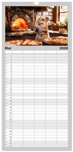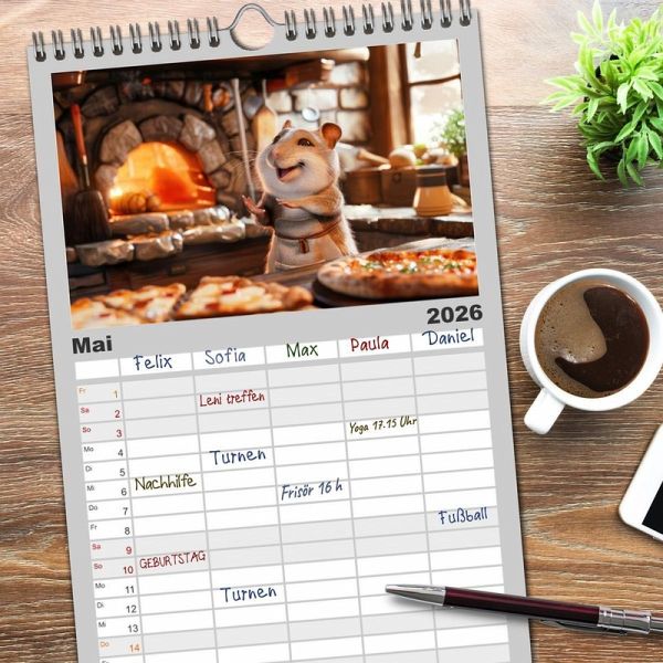 PRAKTISCH - übersichtlicher Familienkalender mit 5 Spalten für bis zu 5 Personen für mehr Struktur im Alltag - so bleiben alle Termine im Blick!ÜBERSICHTLICH - mit farblich getrennten Wochen- und Feiertagen. Die einzelnen Felder bieten genügend Platz für Eintragungen. So macht Organisieren Spaß!FANTASTISCHE BILDER - Dieser Planer ist nicht nur eine nützliche Hilfe im Alltag, sondernschmückt gleichzeitig Ihr Zuhause. Ideal auch als Geschenk.FÜR ALLE STIFTE GEEIGNET - ganz egal, ob Sie lieber mit Kugelschreiber oder Bleistift schreiben.NACHHALTIG - deutliche Abfallreduzierung durch bedarfsgerechte Einzelstückfertigung, umweltfreundliches FSC-zertifiziertes Papier, Produktion in Deutschland, klimabewusste Logistik.Ein Muss für alle Pizzabäcker, die den Tag mit einem Lächeln beginnen wollen von Autor(in): Peter Rübsamen