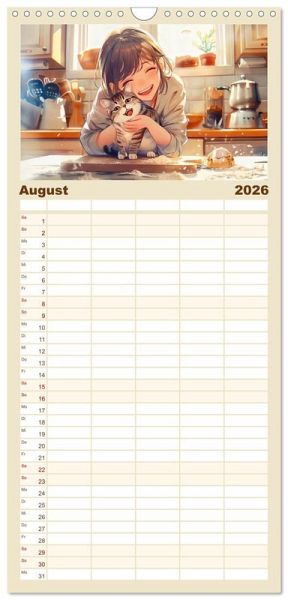 PRAKTISCH - übersichtlicher Familienkalender mit 5 Spalten für bis zu 5 Personen für mehr Struktur im Alltag - so bleiben alle Termine im Blick!ÜBERSICHTLICH - mit farblich getrennten Wochen- und Feiertagen. Die einzelnen Felder bieten genügend Platz für Eintragungen. So macht Organisieren Spaß!FANTASTISCHE BILDER - Dieser Planer ist nicht nur eine nützliche Hilfe im Alltag, sondern schmückt gleichzeitig Ihr Zuhause. Ideal auch als Geschenk.FÜR ALLE STIFTE GEEIGNET - ganz egal, ob Sie lieber mit Kugelschreiber oder Bleistift schreiben.NACHHALTIG - deutliche Abfallreduzierung durch bedarfsgerechte Einzelstückfertigung, umweltfreundliches FSC-zertifiziertes Papier, Produktion in Deutschland, klimabewusste Logistik.Haustier-Kumpels und Anime-Abenteuer: Ein Jahr voller Freuden von Autor(in): Anja Frost