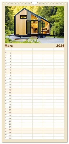 PRAKTISCH - übersichtlicher Familienkalender mit 5 Spalten für bis zu 5 Personen für mehr Struktur im Alltag - so bleiben alle Termine im Blick!ÜBERSICHTLICH - mit farblich getrennten Wochen- und Feiertagen. Die einzelnen Felder bieten genügend Platz für Eintragungen. So macht Organisieren Spaß!FANTASTISCHE BILDER - Dieser Planer ist nicht nur eine nützliche Hilfe im Alltag, sondern schmückt gleichzeitig Ihr Zuhause. Ideal auch als Geschenk.FÜR ALLE STIFTE GEEIGNET - ganz egal, ob Sie lieber mit Kugelschreiber oder Bleistift schreiben.NACHHALTIG - deutliche Abfallreduzierung durch bedarfsgerechte Einzelstückfertigung, umweltfreundliches FSC-zertifiziertes Papier, Produktion in Deutschland, klimabewusste Logistik.Minimalistische Wohnkonzepte auf kleinstem Raum von Autor(in): Susan Michel
