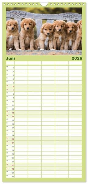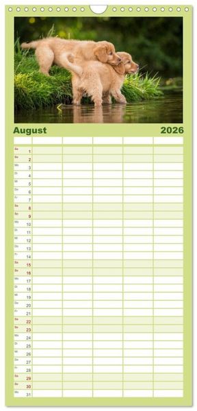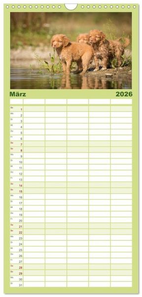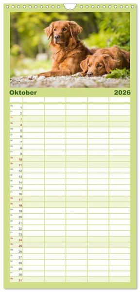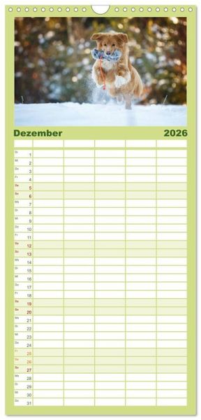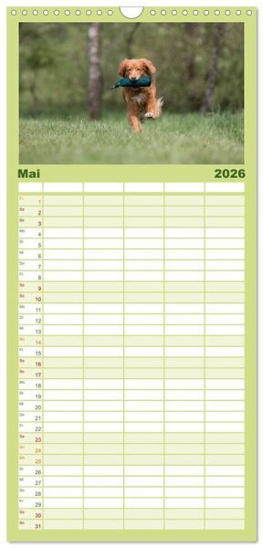 PRAKTISCH - übersichtlicher Familienkalender mit 5 Spalten für bis zu 5 Personen für mehr Struktur im Alltag - so bleiben alle Termine im Blick!ÜBERSICHTLICH - mit farblich getrennten Wochen- und Feiertagen. Die einzelnen Felder bieten genügend Platz für Eintragungen. So macht Organisieren Spaß!FANTASTISCHE BILDER - Dieser Planer ist nicht nur eine nützliche Hilfe im Alltag, sondern schmückt gleichzeitig Ihr Zuhause. Ideal auch als Geschenk.FÜR ALLE STIFTE GEEIGNET - ganz egal, ob Sie lieber mit Kugelschreiber oder Bleistift schreiben.NACHHALTIG - deutliche Abfallreduzierung durch bedarfsgerechte Einzelstückfertigung, umweltfreundliches FSC-zertifiziertes Papier, Produktion in Deutschland, klimabewusste Logistik.Ein Kalender mit 13 wunderschöne Fotos von Novia Scotia Duck Tolling Retrievern. Lassen Sie sich jeden Monat von dieser Hunderasse erneut verzaubern. von Autor(in): Anna Auerbach