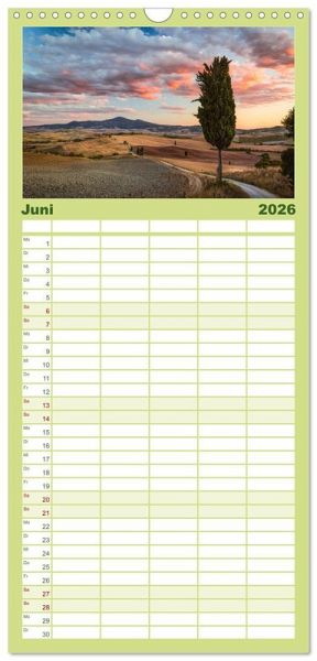 PRAKTISCH - übersichtlicher Familienkalender mit 5 Spalten für bis zu 5 Personen für mehr Struktur im Alltag - so bleiben alle Termine im Blick!ÜBERSICHTLICH - mit farblich getrennten Wochen- und Feiertagen. Die einzelnen Felder bieten genügend Platz für Eintragungen. So macht Organisieren Spaß!FANTASTISCHE BILDER - Dieser Planer ist nicht nur eine nützliche Hilfe im Alltag, sondern schmückt gleichzeitig Ihr Zuhause. Ideal auch als Geschenk.FÜR ALLE STIFTE GEEIGNET - ganz egal, ob Sie lieber mit Kugelschreiber oder Bleistift schreiben.NACHHALTIG - deutliche Abfallreduzierung durch bedarfsgerechte Einzelstückfertigung, umweltfreundliches FSC-zertifiziertes Papier, Produktion in Deutschland, klimabewusste Logistik.Wunderbare Landschaften und Städte von Autor(in): Matteo Colombo
