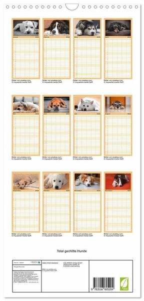 PRAKTISCH - übersichtlicher Familienkalender mit 5 Spalten für bis zu 5 Personen für mehr Struktur im Alltag - so bleiben alle Termine im Blick!ÜBERSICHTLICH - mit farblich getrennten Wochen- und Feiertagen. Die einzelnen Felder bieten genügend Platz für Eintragungen. So macht Organisieren Spaß!FANTASTISCHE BILDER - Dieser Planer ist nicht nur eine nützliche Hilfe im Alltag, sondern schmückt gleichzeitig Ihr Zuhause. Ideal auch als Geschenk.FÜR ALLE STIFTE GEEIGNET - ganz egal, ob Sie lieber mit Kugelschreiber oder Bleistift schreiben.NACHHALTIG - deutliche Abfallreduzierung durch bedarfsgerechte Einzelstückfertigung, umweltfreundliches FSC-zertifiziertes Papier, Produktion in Deutschland, klimabewusste Logistik.Hundekalender mit gechillten Hunden von Autor(in): mquadrat media