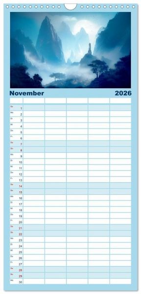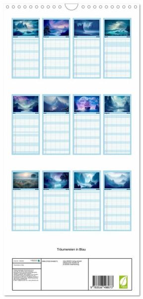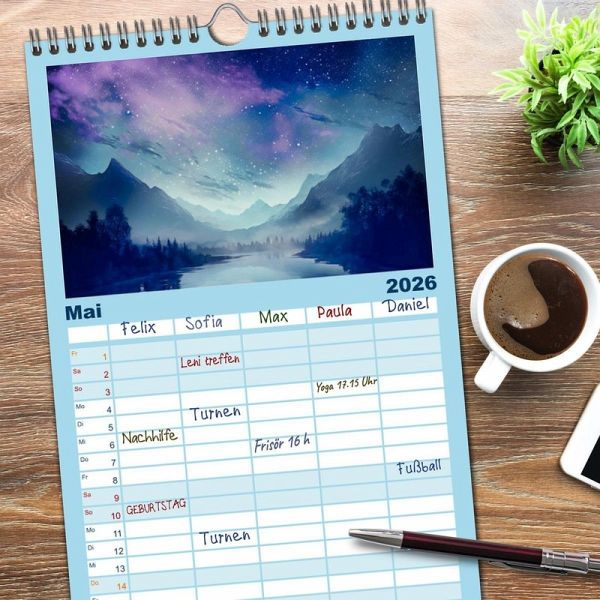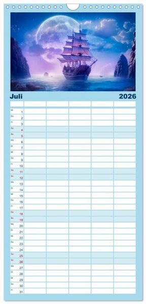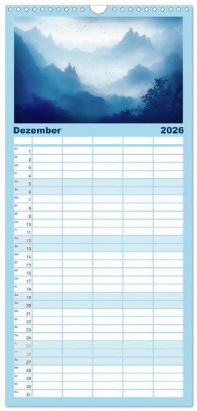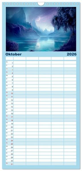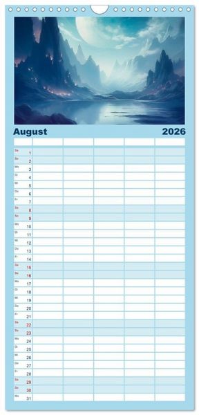 PRAKTISCH - übersichtlicher Familienkalender mit 5 Spalten für bis zu 5 Personen für mehr Struktur im Alltag - so bleiben alle Termine im Blick!ÜBERSICHTLICH - mit farblich getrennten Wochen- und Feiertagen. Die einzelnen Felder bieten genügend Platz für Eintragungen. So macht Organisieren Spaß!FANTASTISCHE BILDER - Dieser Planer ist nicht nur eine nützliche Hilfe im Alltag, sondern schmückt gleichzeitig Ihr Zuhause. Ideal auch als Geschenk.FÜR ALLE STIFTE GEEIGNET - ganz egal, ob Sie lieber mit Kugelschreiber oder Bleistift schreiben.NACHHALTIG - deutliche Abfallreduzierung durch bedarfsgerechte Einzelstückfertigung, umweltfreundliches FSC-zertifiziertes Papier, Produktion in Deutschland, klimabewusste Logistik.Fantasy in Blau von Autor(in): Simone Wunderlich