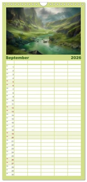 PRAKTISCH - übersichtlicher Familienkalender mit 5 Spalten für bis zu 5 Personen für mehr Struktur im Alltag - so bleiben alle Termine im Blick!ÜBERSICHTLICH - mit farblich getrennten Wochen- und Feiertagen. Die einzelnen Felder bieten genügend Platz für Eintragungen. So macht Organisieren Spaß!FANTASTISCHE BILDER - Dieser Planer ist nicht nur eine nützliche Hilfe im Alltag, sondern schmückt gleichzeitig Ihr Zuhause. Ideal auch als Geschenk.FÜR ALLE STIFTE GEEIGNET - ganz egal, ob Sie lieber mit Kugelschreiber oder Bleistift schreiben.NACHHALTIG - deutliche Abfallreduzierung durch bedarfsgerechte Einzelstückfertigung, umweltfreundliches FSC-zertifiziertes Papier, Produktion in Deutschland, klimabewusste Logistik.Bezaubernde Fantasylandschaften von Autor(in): Simone Wunderlich