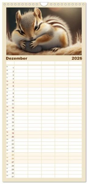 PRAKTISCH - übersichtlicher Familienkalender mit 5 Spalten für bis zu 5 Personen für mehr Struktur im Alltag - so bleiben alle Termine im Blick!ÜBERSICHTLICH - mit farblich getrennten Wochen- und Feiertagen. Die einzelnen Felder bieten genügend Platz für Eintragungen. So macht Organisieren Spaß!FANTASTISCHE BILDER - Dieser Planer ist nicht nur eine nützliche Hilfe im Alltag, sondern schmückt gleichzeitig Ihr Zuhause. Ideal auch als Geschenk.FÜR ALLE STIFTE GEEIGNET - ganz egal, ob Sie lieber mit Kugelschreiber oder Bleistift schreiben.NACHHALTIG - deutliche Abfallreduzierung durch bedarfsgerechte Einzelstückfertigung, umweltfreundliches FSC-zertifiziertes Papier, Produktion in Deutschland, klimabewusste Logistik.Der Kalenderentführt Sie in eine Welt voller Niedlichkeit, während er durch zwölf Monate hinweg eine bezaubernde Sammlung von vielen süßen schlafenden Tieren präsentiert. von Autor(in): Fabian Junge