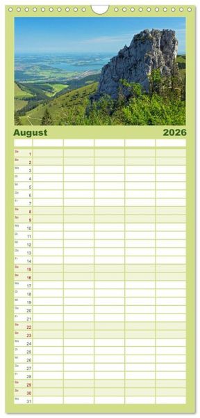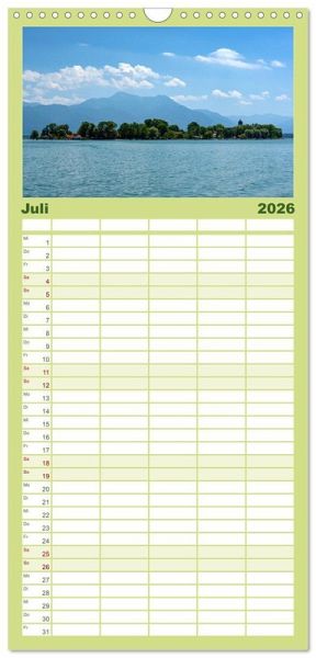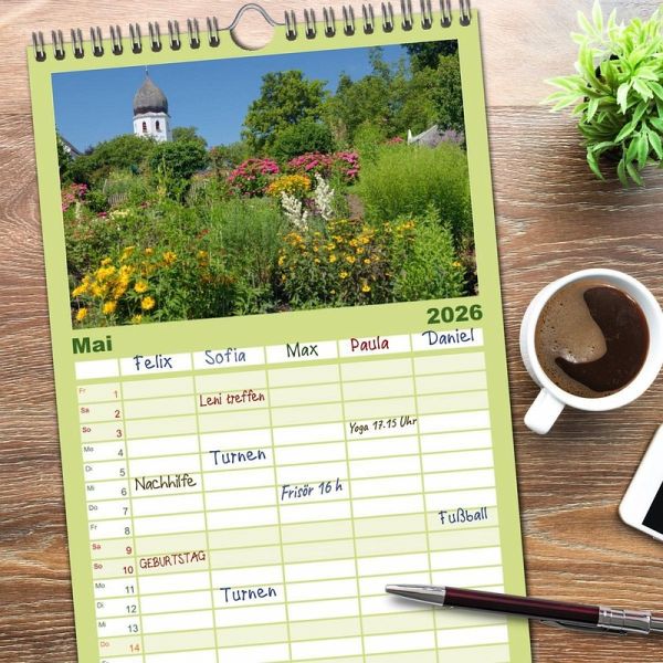 PRAKTISCH - übersichtlicher Familienkalender mit 5 Spalten für bis zu 5 Personen für mehr Struktur im Alltag - so bleiben alle Termine im Blick!ÜBERSICHTLICH - mit farblich getrennten Wochen- und Feiertagen. Die einzelnen Felder bieten genügend Platz für Eintragungen. So macht Organisieren Spaß!FANTASTISCHE BILDER - Dieser Planer ist nicht nur eine nützliche Hilfe im Alltag, sondern schmückt gleichzeitig Ihr Zuhause. Ideal auch als Geschenk.FÜR ALLE STIFTE GEEIGNET - ganz egal, ob Sie lieber mit Kugelschreiber oder Bleistift schreiben.NACHHALTIG - deutliche Abfallreduzierung durch bedarfsgerechte Einzelstückfertigung, umweltfreundliches FSC-zertifiziertes Papier, Produktion in Deutschland, klimabewusste Logistik.Monat für Monat ein wunderschönes Bild aus einer einzigartigen Urlaubsregion von Autor(in): Christof Wermter