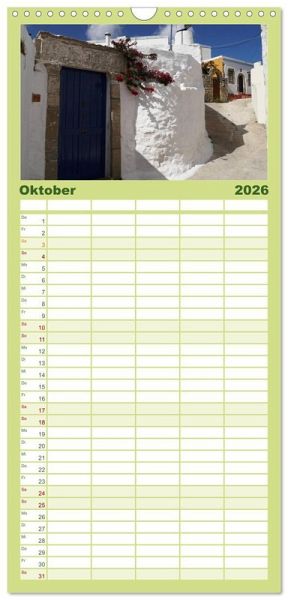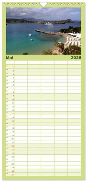 PRAKTISCH - übersichtlicher Familienkalender mit 5 Spalten für bis zu 5 Personen für mehr Struktur im Alltag - so bleiben alle Termine im Blick!ÜBERSICHTLICH - mit farblich getrennten Wochen- und Feiertagen. Die einzelnen Felder bieten genügend Platz für Eintragungen. So macht Organisieren Spaß!FANTASTISCHE BILDER - Dieser Planer ist nicht nur eine nützliche Hilfe im Alltag, sondern schmückt gleichzeitig Ihr Zuhause. Ideal auch als Geschenk.FÜR ALLE STIFTE GEEIGNET - ganz egal, ob Sie lieber mit Kugelschreiber oder Bleistift schreiben.NACHHALTIG - deutliche Abfallreduzierung durch bedarfsgerechte Einzelstückfertigung, umweltfreundliches FSC-zertifiziertes Papier, Produktion in Deutschland, klimabewusste Logistik.Anspruchvolle, künstlerische Fotografien von Cristina Wilson aus der traumhaften Insel Rhodos in Griechenland. von Autor(in): cristinawilson