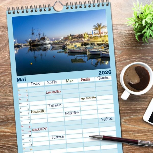 t 5 Spalten für bis zu 5 Personen für mehr Struktur im Alltag - so bleiben alle Termine im Blick!ÜBERSICHTLICH - mit farblich getrennten Wochen- und Feiertagen. Die einzelnen Felder bieten genügend Platz für Eintragungen. So macht Organisieren Spaß!FANTASTISCHE BILDER - Dieser Planer ist nicht nur eine nützliche Hilfe im Alltag, sondern schmückt gleichzeitig Ihr Zuhause. Ideal auch als Geschenk.FÜR ALLE STIFTE GEEIGNET - ganz egal, ob Sie lieber mit Kugelschreiber oder Bleistift schreiben.NACHHALTIG - deutliche Abfallreduzierung durch bedarfsgerechte Einzelstückfertigung, umweltfreundliches FSC-zertifiziertes Papier, Produktion in Deutschland, klimabewusste Logistik.Die ganze Vielfalt der traumhaften Mittelmeerinsel Zypern. von Autor(in): Peter Schickert