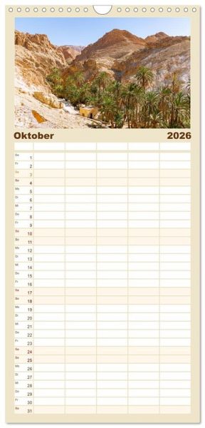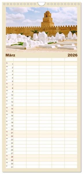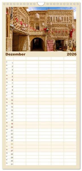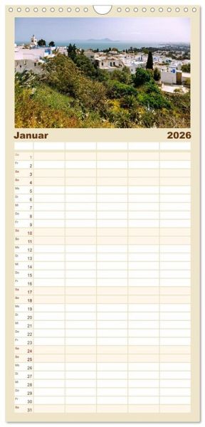 PRAKTISCH - übersichtlicher Familienkalender mit 5 Spalten für bis zu 5 Personen für mehr Struktur im Alltag - so bleiben alle Termine im Blick!ÜBERSICHTLICH - mit farblich getrennten Wochen- und Feiertagen. Die einzelnen Felder bieten genügend Platz für Eintragungen. So macht Organisieren Spaß!FANTASTISCHE BILDER - Dieser Planer ist nicht nur eine nützliche Hilfe im Alltag, sondern schmückt gleichzeitig Ihr Zuhause. Ideal auch als Geschenk.FÜR ALLE STIFTE GEEIGNET - ganz egal, ob Sie lieber mit Kugelschreiber oder Bleistift schreiben.NACHHALTIG - deutliche Abfallreduzierung durch bedarfsgerechte Einzelstückfertigung, umweltfreundliches FSC-zertifiziertes Papier, Produktion in Deutschland, klimabewusste Logistik.Farbenfrohe Impressionen aus Tunesien zeigen das Land zwischen Wüste, Mittelmeer und orientalischer Baukunst in stimmungsvollen Fotografien. von Autor(in): Hanna Wagner
