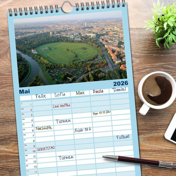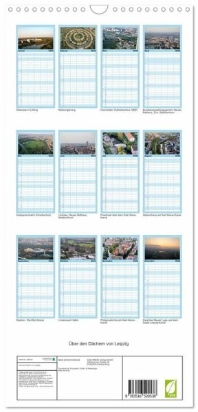 PRAKTISCH - übersichtlicher Familienkalender mit 5 Spalten für bis zu 5 Personen für mehr Struktur im Alltag - so bleiben alle Termine im Blick!ÜBERSICHTLICH - mit farblich getrennten Wochen- und Feiertagen. Die einzelnen Felder bieten genügend Platz für Eintragungen. So macht Organisieren Spaß!FANTASTISCHE BILDER - Dieser Planer ist nicht nur eine nützliche Hilfe im Alltag, sondern schmückt gleichzeitig Ihr Zuhause. Ideal auch als Geschenk.FÜR ALLE STIFTE GEEIGNET - ganz egal, ob Sie lieber mit Kugelschreiber oder Bleistift schreiben.NACHHALTIG - deutliche Abfallreduzierung durch bedarfsgerechte Einzelstückfertigung, umweltfreundliches FSC-zertifiziertes Papier, Produktion in Deutschland, klimabewusste Logistik.Luftbilder von Leipzig von Autor(in): Claudia Knof-Hartmann
