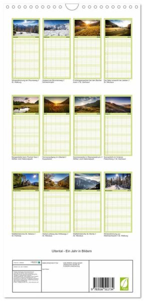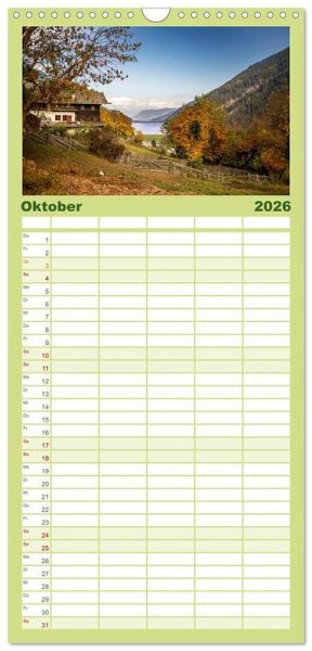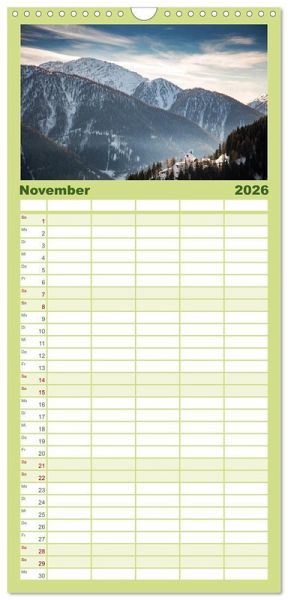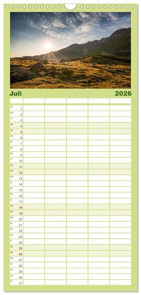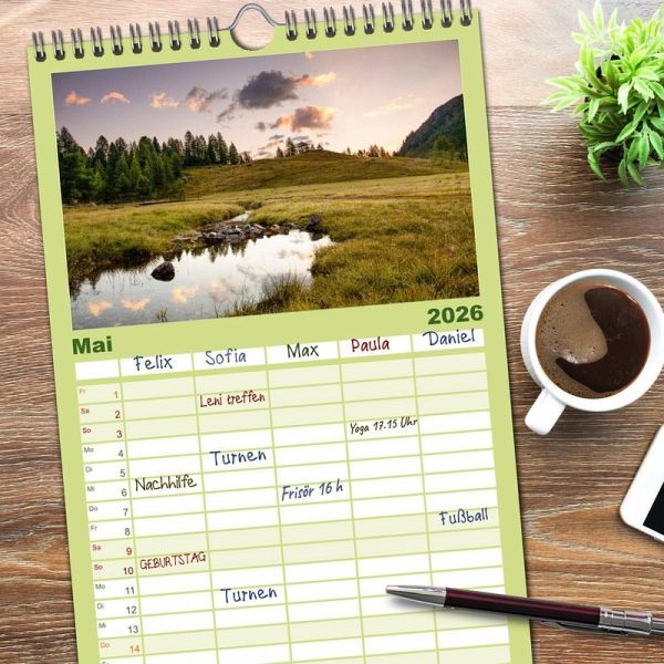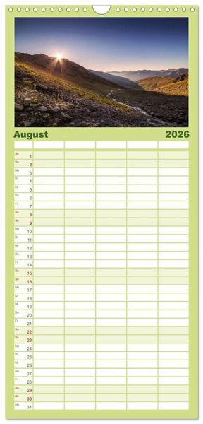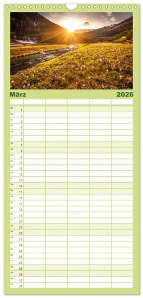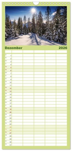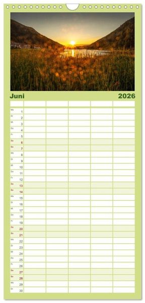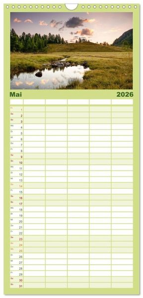 PRAKTISCH - übersichtlicher Familienkalender mit 5 Spalten für bis zu 5 Personen für mehr Struktur im Alltag - so bleiben alle Termine im Blick!ÜBERSICHTLICH - mit farblich getrennten Wochen- und Feiertagen. Die einzelnen Felder bieten genügend Platz für Eintragungen. So macht Organisieren Spaß!FANTASTISCHE BILDER - Dieser Planer ist nicht nur eine nützliche Hilfe im Alltag, sondern schmückt gleichzeitig Ihr Zuhause. Ideal auch als Geschenk.FÜR ALLE STIFTE GEEIGNET - ganz egal, ob Sie lieber mit Kugelschreiber oder Bleistift schreiben.NACHHALTIG - deutliche Abfallreduzierung durch bedarfsgerechte Einzelstückfertigung, umweltfreundliches FSC-zertifiziertes Papier, Produktion in Deutschland, klimabewusste Logistik.Momentaufnahmen aus einer unberührten Natur in den Alpen Südtirols von Autor(in): Gert Pöder