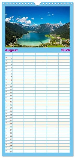 PRAKTISCH - übersichtlicher Familienkalender mit 5 Spalten für bis zu 5 Personen für mehr Struktur im Alltag - so bleiben alle Termine im Blick!ÜBERSICHTLICH - mit farblich getrennten Wochen- und Feiertagen. Die einzelnen Felder bieten genügend Platz für Eintragungen. So macht Organisieren Spaß!FANTASTISCHE BILDER - Dieser Planer ist nicht nur eine nützliche Hilfe im Alltag, sondern schmückt gleichzeitig Ihr Zuhause. Ideal auch als Geschenk.FÜR ALLE STIFTE GEEIGNET - ganz egal, ob Sie lieber mit Kugelschreiber oder Bleistift schreiben.NACHHALTIG - deutliche Abfallreduzierung durch bedarfsgerechte Einzelstückfertigung, umweltfreundliches FSC-zertifiziertes Papier, Produktion in Deutschland, klimabewusste Logistik.Tauche ein in die Schönheit des Achensees, Tirols unvergessliches Juwel! von Autor(in): Susan Michel