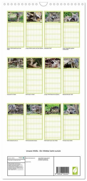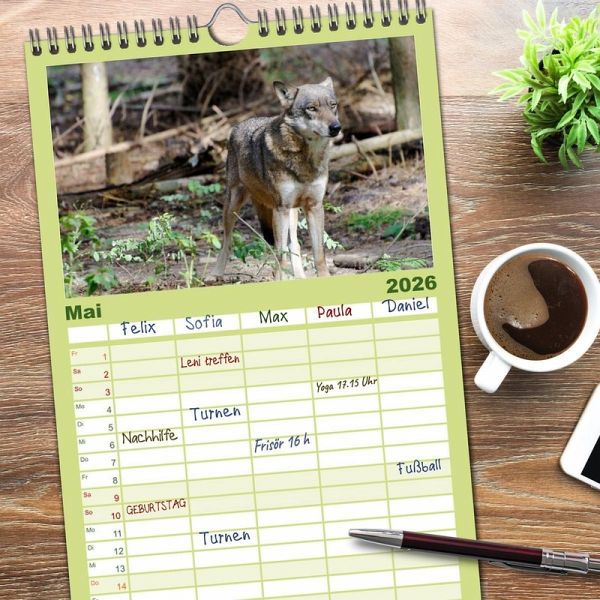 PRAKTISCH - übersichtlicher Familienkalender mit 5 Spalten für bis zu 5 Personen für mehr Struktur im Alltag - so bleiben alle Termine im Blick!ÜBERSICHTLICH - mit farblich getrennten Wochen- und Feiertagen. Die einzelnen Felder bieten genügend Platz für Eintragungen. So macht Organisieren Spaß!FANTASTISCHE BILDER - Dieser Planer ist nicht nur eine nützliche Hilfe im Alltag, sondern schmückt gleichzeitig Ihr Zuhause. Ideal auch als Geschenk.FÜR ALLE STIFTE GEEIGNET - ganz egal, ob Sie lieber mit Kugelschreiber oder Bleistift schreiben.NACHHALTIG - deutliche Abfallreduzierung durch bedarfsgerechte Einzelstückfertigung, umweltfreundliches FSC-zertifiziertes Papier, Produktion in Deutschland, klimabewusste Logistik.Der Wolf ist zurück in den heimischen Wäldern und begleitet Sie Monat für Monat durch das Jahr. von Autor(in): Angela Rohde