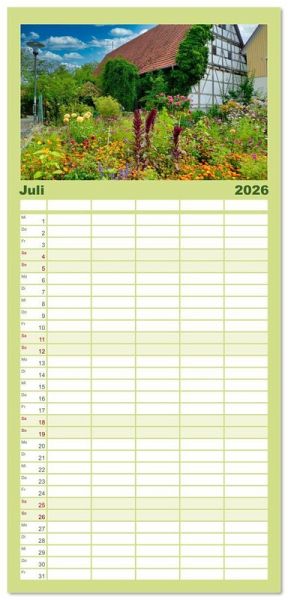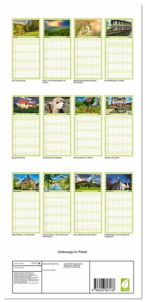 PRAKTISCH - übersichtlicher Familienkalender mit 5 Spalten für bis zu 5 Personen für mehr Struktur im Alltag - so bleiben alle Termine im Blick!ÜBERSICHTLICH - mit farblich getrennten Wochen- und Feiertagen. Die einzelnen Felder bieten genügend Platz für Eintragungen. So macht Organisieren Spaß!FANTASTISCHE BILDER - Dieser Planer ist nicht nur eine nützliche Hilfe im Alltag, sondern schmückt gleichzeitig Ihr Zuhause. Ideal auch als Geschenk.FÜR ALLE STIFTE GEEIGNET - ganz egal, ob Sie lieber mit Kugelschreiber oder Bleistift schreiben.NACHHALTIG - deutliche Abfallreduzierung durch bedarfsgerechte Einzelstückfertigung, umweltfreundliches FSC-zertifiziertes Papier, Produktion in Deutschland, klimabewusste Logistik.Eine vielseitige Kulturlandschaft von Autor(in): Peter Huschka