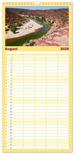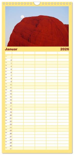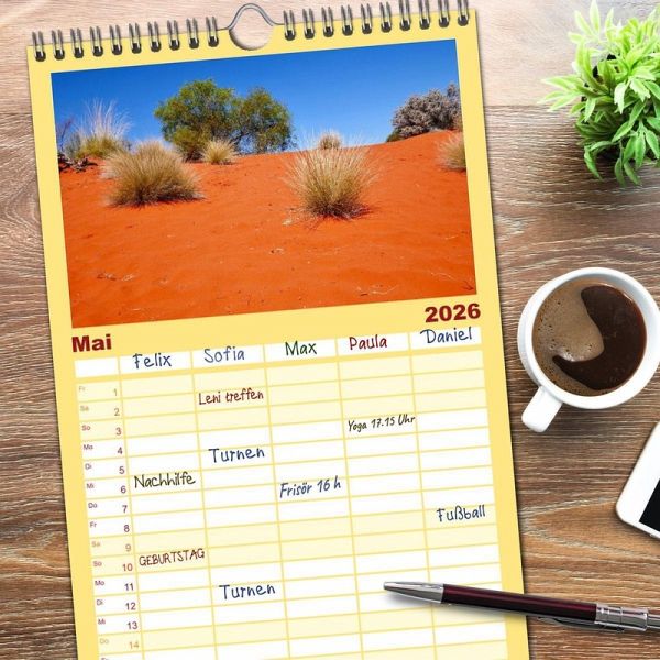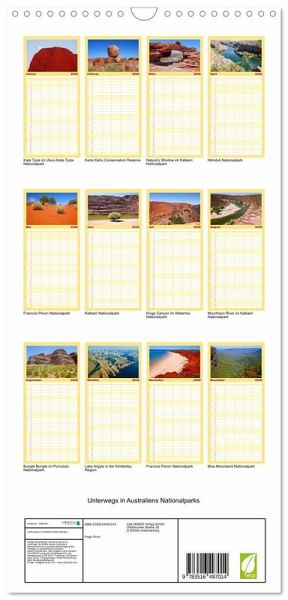 PRAKTISCH - übersichtlicher Familienkalender mit 5 Spalten für bis zu 5 Personen für mehr Struktur im Alltag - so bleiben alle Termine im Blick!ÜBERSICHTLICH - mit farblich getrennten Wochen- und Feiertagen. Die einzelnen Felder bieten genügend Platz für Eintragungen. So macht Organisieren Spaß!FANTASTISCHE BILDER - Dieser Planer ist nicht nur eine nützliche Hilfe im Alltag, sondern schmückt gleichzeitig Ihr Zuhause. Ideal auch als Geschenk.FÜR ALLE STIFTE GEEIGNET - ganz egal, ob Sie lieber mit Kugelschreiber oder Bleistift schreiben.NACHHALTIG - deutliche Abfallreduzierung durch bedarfsgerechte Einzelstückfertigung, umweltfreundliches FSC-zertifiziertes Papier, Produktion in Deutschland, klimabewusste Logistik.Außergewöhnliche Nationalparks in Northern Territory und Westaustralien von Autor(in): Peggy Daum