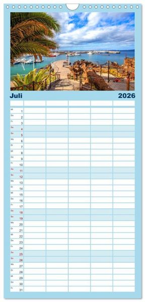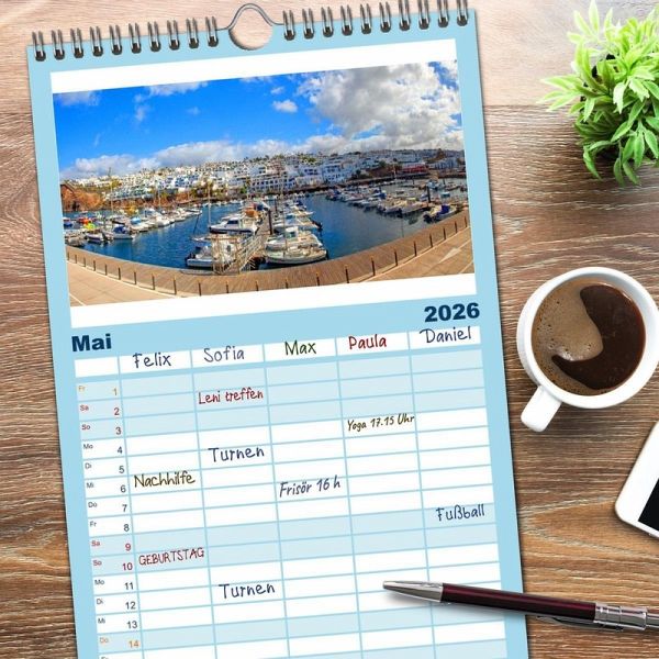 PRAKTISCH - übersichtlicher Familienkalender mit 5 Spalten für bis zu 5 Personen für mehr Struktur im Alltag - so bleiben alle Termine im Blick!ÜBERSICHTLICH - mit farblich getrennten Wochen- und Feiertagen. Die einzelnen Felder bieten genügend Platz für Eintragungen. So macht Organisieren Spaß!FANTASTISCHE BILDER - Dieser Planer ist nicht nur eine nützliche Hilfe im Alltag, sondern schmückt gleichzeitig Ihr Zuhause. Ideal auch als Geschenk.FÜR ALLE STIFTE GEEIGNET - ganz egal, ob Sie lieber mit Kugelschreiber oder Bleistift schreiben.NACHHALTIG - deutliche Abfallreduzierung durch bedarfsgerechte Einzelstückfertigung, umweltfreundliches FSC-zertifiziertes Papier, Produktion in Deutschland, klimabewusste Logistik.Traumhafte Impressionen auf einer der schönsten Inseln der Kanaren von Autor(in): Christa Kramer