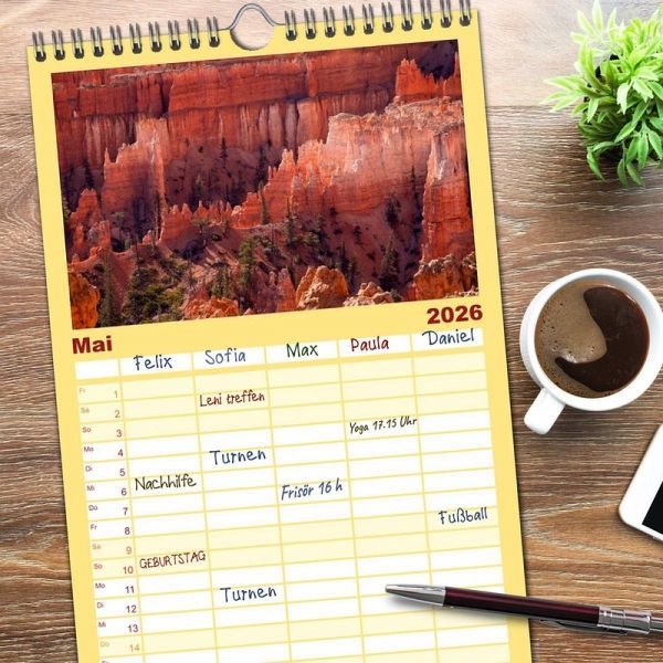 der mit 5 Spalten für bis zu 5 Personen für mehr Struktur im Alltag - so bleiben alle Termine im Blick!ÜBERSICHTLICH - mit farblich getrennten Wochen- und Feiertagen. Die einzelnen Felder bieten genügend Platz für Eintragungen. So macht Organisieren Spaß!FANTASTISCHE BILDER - Dieser Planer ist nicht nur eine nützliche Hilfe im Alltag, sondern schmückt gleichzeitig Ihr Zuhause. Ideal auch als Geschenk.FÜR ALLE STIFTE GEEIGNET - ganz egal, ob Sie lieber mit Kugelschreiber oder Bleistift schreiben.NACHHALTIG - deutliche Abfallreduzierung durch bedarfsgerechte Einzelstückfertigung, umweltfreundliches FSC-zertifiziertes Papier, Produktion in Deutschland, klimabewusste Logistik.12 Monate mit einigen der schönsten Höhepunkte im wunderbaren Südwesten der USA. von Autor(in): Peter Schickert