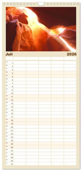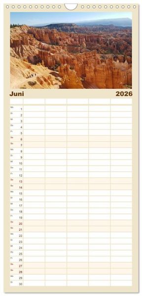PRAKTISCH - übersichtlicher Familienkalender mit 5 Spalten für bis zu 5 Personen für mehr Struktur im Alltag - so bleiben alle Termine im Blick!ÜBERSICHTLICH - mit farblich getrennten Wochen- und Feiertagen. Die einzelnen Felder bieten genügend Platz für Eintragungen. So macht Organisieren Spaß!FANTASTISCHE BILDER - Dieser Planer ist nicht nur eine nützliche Hilfe im Alltag, sondern schmückt gleichzeitig Ihr Zuhause. Ideal auch als Geschenk.FÜR ALLE STIFTE GEEIGNET - ganz egal, ob Sie lieber mit Kugelschreiber oder Bleistift schreiben.NACHHALTIG - deutliche Abfallreduzierung durch bedarfsgerechte Einzelstückfertigung, umweltfreundliches FSC-zertifiziertes Papier, Produktion in Deutschland, klimabewusste Logistik.Atemberaubende Landschaften im (Süd-) Westen der USA von Autor(in): Piera Marlena Büchler