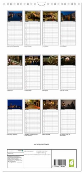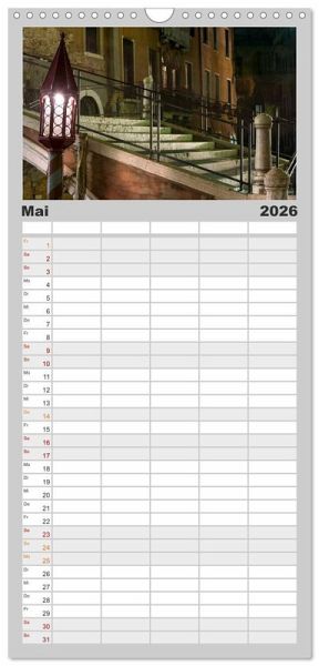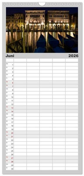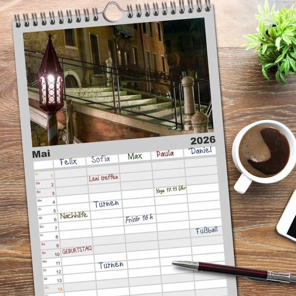 milienkalender mit 5 Spalten für bis zu 5 Personen für mehr Struktur im Alltag - so bleiben alle Termine im Blick!ÜBERSICHTLICH - mit farblich getrennten Wochen- und Feiertagen. Die einzelnen Felder bieten genügend Platz für Eintragungen. So macht Organisieren Spaß!FANTASTISCHE BILDER - Dieser Planer ist nicht nur eine nützliche Hilfe im Alltag, sondern schmückt gleichzeitig Ihr Zuhause. Ideal auch als Geschenk.FÜR ALLE STIFTE GEEIGNET - ganz egal, ob Sie lieber mit Kugelschreiber oder Bleistift schreiben.NACHHALTIG - deutliche Abfallreduzierung durch bedarfsgerechte Einzelstückfertigung, umweltfreundliches FSC-zertifiziertes Papier, Produktion in Deutschland, klimabewusste Logistik.Venedig bei Nacht von Autor(in): Andreas Müller Fotografie