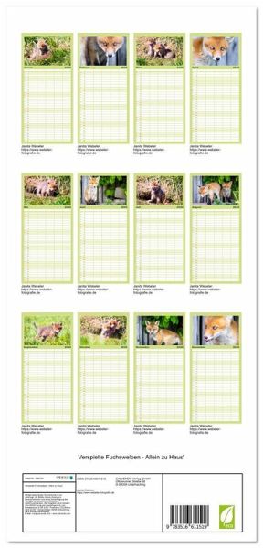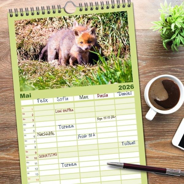 PRAKTISCH - übersichtlicher Familienkalender mit 5 Spalten für bis zu 5 Personen für mehr Struktur im Alltag - so bleiben alle Termine im Blick!ÜBERSICHTLICH - mit farblich getrennten Wochen- und Feiertagen.Die einzelnen Felder bieten genügend Platz für Eintragungen. So macht Organisieren Spaß!FANTASTISCHE BILDER - Dieser Planer ist nicht nur eine nützliche Hilfe im Alltag, sondern schmückt gleichzeitig Ihr Zuhause. Ideal auch als Geschenk.FÜR ALLE STIFTE GEEIGNET - ganz egal, ob Sie lieber mit Kugelschreiber oder Bleistift schreiben.NACHHALTIG - deutliche Abfallreduzierung durch bedarfsgerechte Einzelstückfertigung, umweltfreundliches FSC-zertifiziertes Papier, Produktion in Deutschland, klimabewusste Logistik.Fuchswelpen entdecken die Welt von Autor(in): Janita Webeler