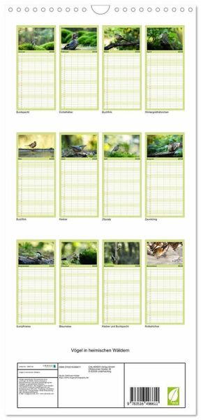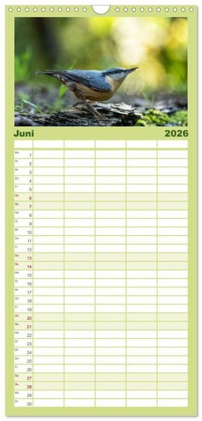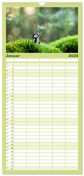 PRAKTISCH - übersichtlicher Familienkalender mit 5 Spalten für bis zu 5 Personen für mehr Struktur im Alltag - so bleiben alle Termine im Blick!ÜBERSICHTLICH - mit farblich getrennten Wochen- und Feiertagen. Die einzelnen Felder bieten genügend Platz für Eintragungen. So macht Organisieren Spaß!FANTASTISCHE BILDER - Dieser Planer ist nicht nur eine nützliche Hilfe im Alltag, sondern schmückt gleichzeitig Ihr Zuhause. Ideal auch als Geschenk.FÜR ALLE STIFTE GEEIGNET - ganz egal, ob Sie lieber mit Kugelschreiber oder Bleistift schreiben.NACHHALTIG - deutliche Abfallreduzierung durch bedarfsgerechte Einzelstückfertigung, umweltfreundliches FSC-zertifiziertes Papier, Produktion in Deutschland, klimabewusste Logistik.In unseren heimischen Wäldern gibt es zahlreiche Vogelarten, von denen ein paar besonders interessante Vertreter hier fotografiert wurden.. von Autor(in): NicGie_Photography