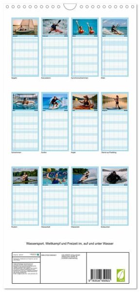 ERSICHTLICH - mit farblich getrennten Wochen- und Feiertagen. Die einzelnen Felder bieten genügend Platz für Eintragungen. So macht Organisieren Spaß!FANTASTISCHE BILDER - Dieser Planer ist nicht nur eine nützliche Hilfe im Alltag, sondern schmückt gleichzeitig Ihr Zuhause. Ideal auch als Geschenk.FÜR ALLE STIFTE GEEIGNET - ganz egal, ob Sie lieber mit Kugelschreiber oder Bleistift schreiben.NACHHALTIG - deutliche Abfallreduzierung durch bedarfsgerechte Einzelstückfertigung, umweltfreundliches FSC-zertifiziertes Papier, Produktion in Deutschland, klimabewusste Logistik.Rein ins Vergnügen: Sport mit dem Element Wasser von Autor(in): Steffani Lehmann