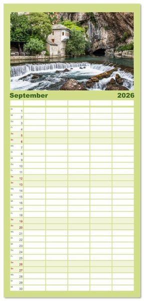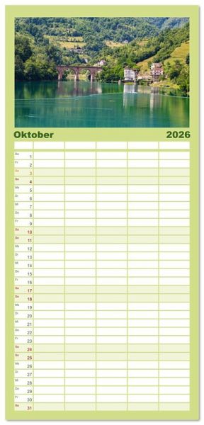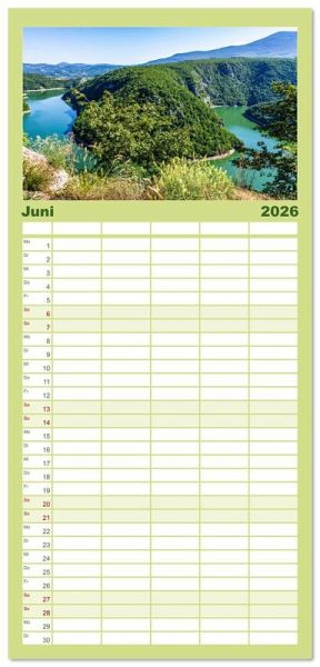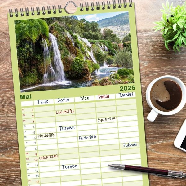 PRAKTISCH - übersichtlicher Familienkalender mit 5 Spalten für bis zu 5 Personen für mehr Struktur im Alltag - so bleiben alle Termine im Blick!ÜBERSICHTLICH - mit farblich getrennten Wochen- und Feiertagen. Die einzelnen Felder bieten genügend Platz für Eintragungen. So macht Organisieren Spaß!FANTASTISCHE BILDER - Dieser Planer ist nicht nur eine nützliche Hilfe im Alltag, sondern schmückt gleichzeitig Ihr Zuhause. Ideal auch als Geschenk.FÜR ALLE STIFTE GEEIGNET - ganz egal, ob Sie lieber mit Kugelschreiber oder Bleistift schreiben.NACHHALTIG - deutliche Abfallreduzierung durch bedarfsgerechte Einzelstückfertigung, umweltfreundliches FSC-zertifiziertes Papier, Produktion in Deutschland, klimabewusste Logistik.Landschaftsaufnahmen aus Bosnien-Herzegowina von Autor(in): PuraVida