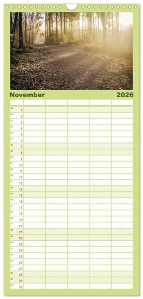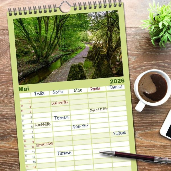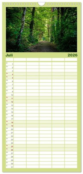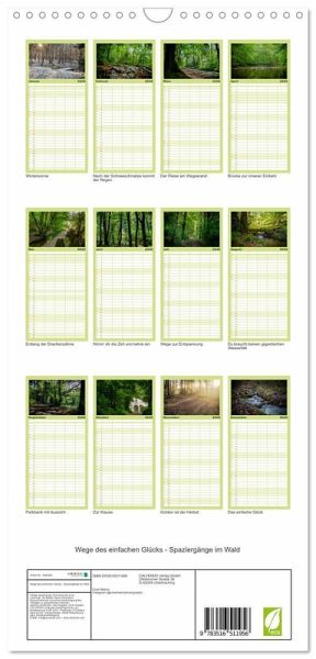 PRAKTISCH - übersichtlicher Familienkalender mit 5 Spalten für bis zu 5 Personen für mehr Struktur im Alltag - so bleiben alle Termine im Blick!ÜBERSICHTLICH - mit farblich getrennten Wochen- und Feiertagen. Die einzelnen Felder bieten genügend Platz für Eintragungen. So macht Organisieren Spaß!FANTASTISCHE BILDER - Dieser Planer ist nicht nur eine nützliche Hilfe im Alltag, sondern schmückt gleichzeitig Ihr Zuhause. Ideal auch als Geschenk.FÜR ALLE STIFTE GEEIGNET - ganz egal, ob Sie lieber mit Kugelschreiber oderBleistift schreiben.NACHHALTIG - deutliche Abfallreduzierung durch bedarfsgerechte Einzelstückfertigung, umweltfreundliches FSC-zertifiziertes Papier, Produktion in Deutschland, klimabewusste Logistik.Die Sehnsucht nacht Einfachheit, Ruhe und Gelassenheit - Spaziergänge im Wald von Autor(in): Emel Malms