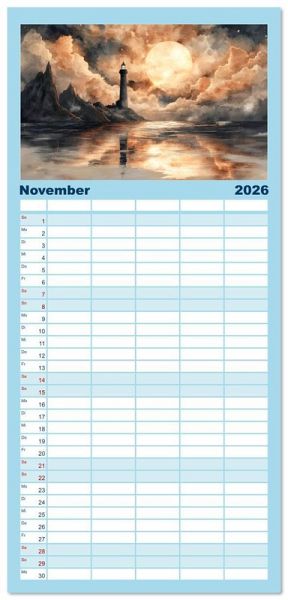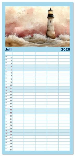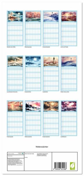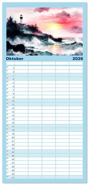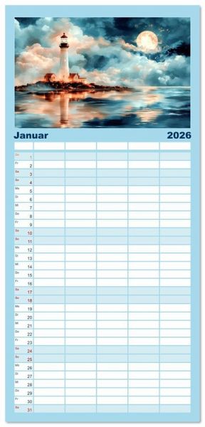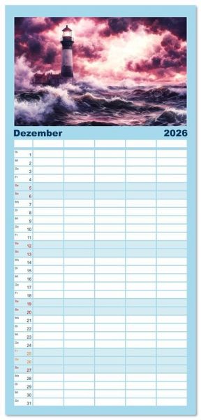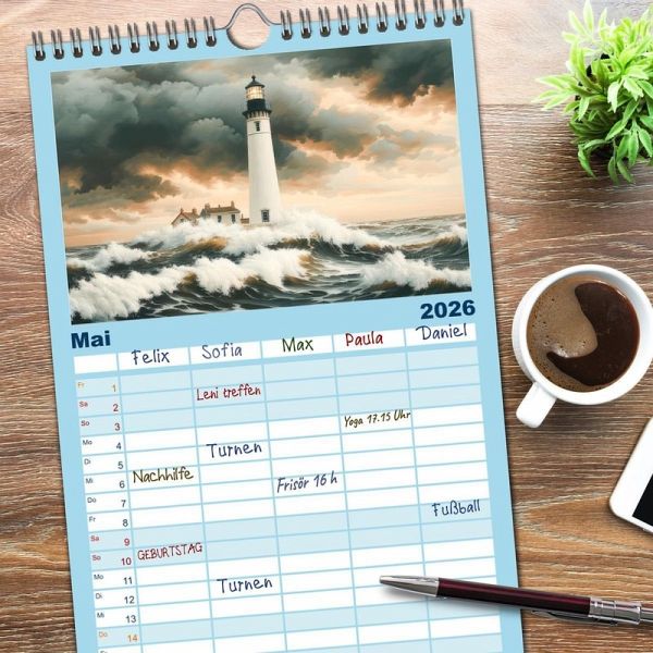 PRAKTISCH - übersichtlicher Familienkalender mit 5 Spalten für bis zu 5 Personen für mehr Struktur im Alltag - so bleiben alle Termine im Blick!ÜBERSICHTLICH - mit farblich getrennten Wochen- und Feiertagen. Die einzelnen Felder bieten genügend Platz für Eintragungen. So macht Organisieren Spaß!FANTASTISCHE BILDER - Dieser Planer ist nicht nur eine nützliche Hilfe im Alltag, sondern schmückt gleichzeitig Ihr Zuhause. Ideal auch als Geschenk.FÜR ALLE STIFTE GEEIGNET - ganz egal, ob Sie lieber mit Kugelschreiber oder Bleistift schreiben.NACHHALTIG - deutliche Abfallreduzierung durch bedarfsgerechte Einzelstückfertigung, umweltfreundliches FSC-zertifiziertes Papier, Produktion in Deutschland, klimabewusste Logistik.Farbenspiele der Leuchtturmwelt von Autor(in): Tina Seidel