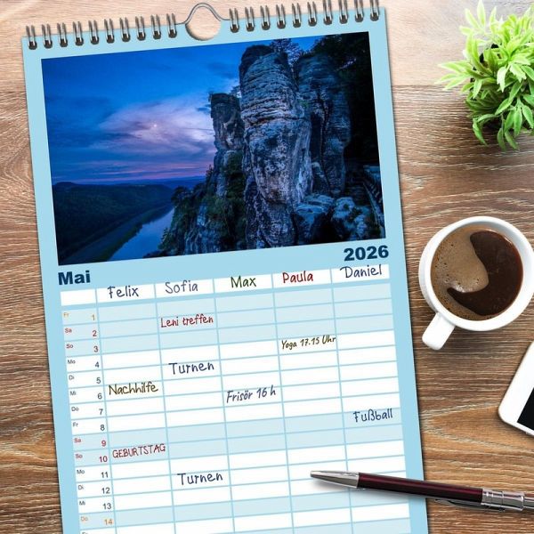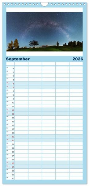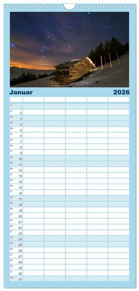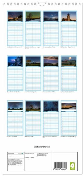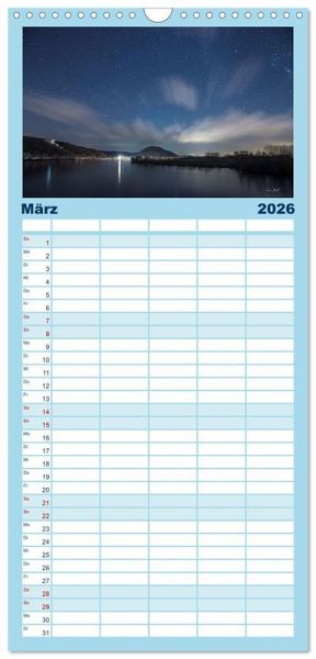 PRAKTISCH - übersichtlicher Familienkalender mit 5 Spalten für bis zu 5 Personen für mehr Struktur im Alltag - so bleiben alle Termine im Blick!ÜBERSICHTLICH - mit farblich getrennten Wochen- und Feiertagen. Die einzelnen Felder bieten genügend Platz für Eintragungen. So macht Organisieren Spaß!FANTASTISCHE BILDER - Dieser Planer ist nicht nur eine nützliche Hilfe im Alltag, sondern schmückt gleichzeitig Ihr Zuhause. Ideal auch als Geschenk.FÜR ALLE STIFTE GEEIGNET - ganz egal, ob Sie lieber mit Kugelschreiber oder Bleistift schreiben.NACHHALTIG - deutliche Abfallreduzierung durch bedarfsgerechte Einzelstückfertigung, umweltfreundliches FSC-zertifiziertes Papier, Produktion in Deutschland, klimabewusste Logistik.Nightscape-Fotografie von Markus Langlotz von Autor(in): Markus A. R. Langlotz
