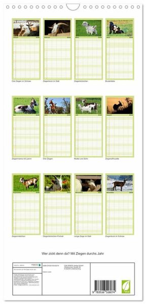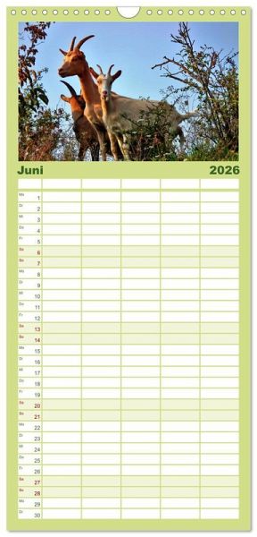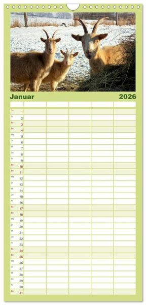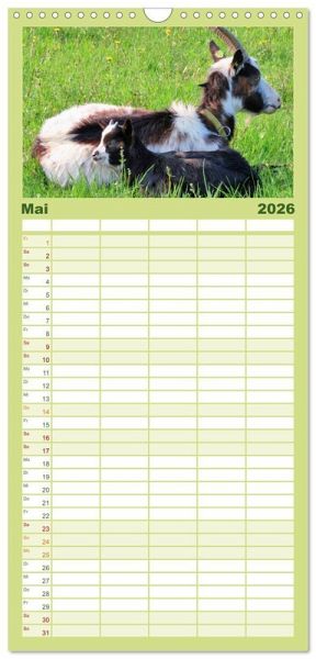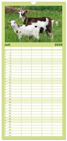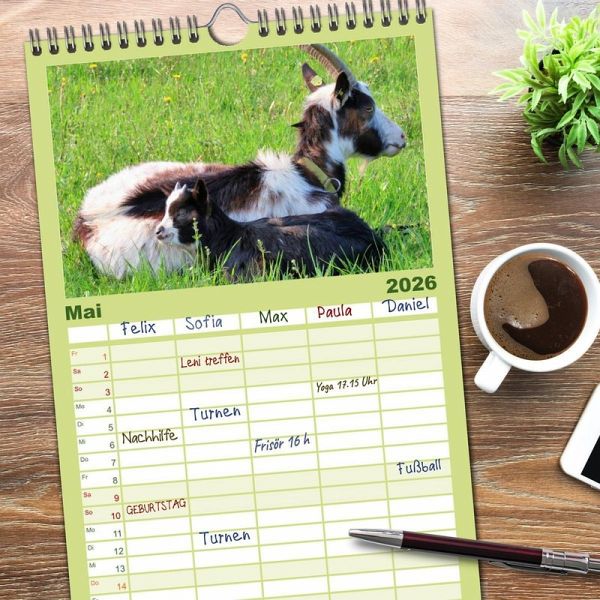 PRAKTISCH - übersichtlicher Familienkalender mit 5 Spalten für bis zu 5 Personen für mehr Struktur im Alltag - so bleiben alle Termine im Blick!ÜBERSICHTLICH - mit farblich getrennten Wochen- und Feiertagen. Die einzelnen Felder bieten genügend Platz für Eintragungen. So macht Organisieren Spaß!FANTASTISCHE BILDER - Dieser Planer ist nicht nur eine nützliche Hilfe im Alltag, sondern schmückt gleichzeitig Ihr Zuhause. Ideal auch als Geschenk.FÜR ALLE STIFTE GEEIGNET - ganz egal, ob Sie lieber mit Kugelschreiber oder Bleistift schreiben.NACHHALTIG - deutliche Abfallreduzierung durch bedarfsgerechte Einzelstückfertigung, umweltfreundliches FSC-zertifiziertes Papier, Produktion in Deutschland, klimabewusste Logistik.Freche Ziegen auf Wiesen und Weiden von Autor(in): Sabine Löwer
