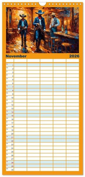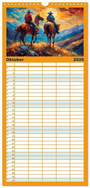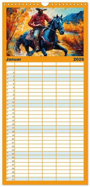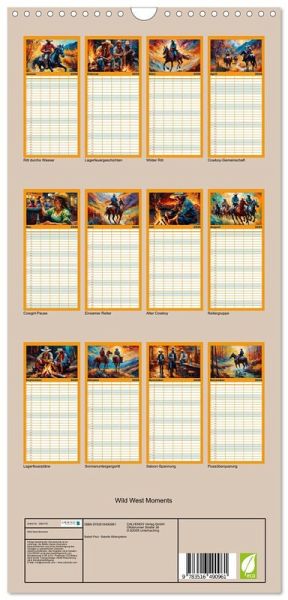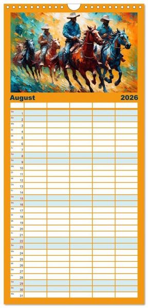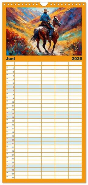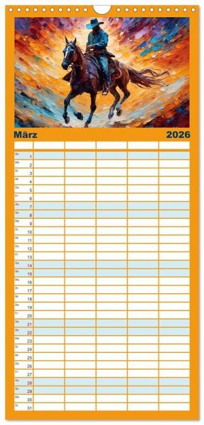 der mit 5 Spalten für bis zu 5 Personen für mehr Struktur im Alltag - so bleiben alle Termine im Blick!ÜBERSICHTLICH - mit farblich getrennten Wochen- und Feiertagen. Die einzelnen Felder bieten genügend Platz für Eintragungen. So macht Organisieren Spaß!FANTASTISCHE BILDER - Dieser Planer ist nicht nur eine nützliche Hilfe im Alltag, sondern schmückt gleichzeitig Ihr Zuhause. Ideal auch als Geschenk.FÜR ALLE STIFTE GEEIGNET - ganz egal, ob Sie lieber mit Kugelschreiber oder Bleistift schreiben.NACHHALTIG - deutliche Abfallreduzierung durch bedarfsgerechte Einzelstückfertigung, umweltfreundliches FSC-zertifiziertes Papier, Produktion in Deutschland, klimabewusste Logistik.Die faszinierende Welt der Cowboys und Cowgirls von Autor(in): Babett's Bildergalerie