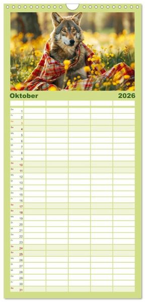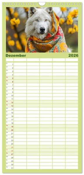 PRAKTISCH - übersichtlicher Familienkalender mit 5 Spalten für bis zu 5 Personen für mehr Struktur im Alltag - so bleiben alle Termine im Blick!ÜBERSICHTLICH - mit farblich getrennten Wochen- und Feiertagen. Die einzelnen Felder bieten genügend Platz für Eintragungen. So macht Organisieren Spaß!FANTASTISCHE BILDER - Dieser Planer ist nicht nur eine nützliche Hilfe im Alltag, sondern schmückt gleichzeitig Ihr Zuhause. Ideal auch als Geschenk.FÜR ALLE STIFTE GEEIGNET - ganz egal, ob Sie lieber mit Kugelschreiber oder Bleistift schreiben.NACHHALTIG - deutliche Abfallreduzierung durch bedarfsgerechte Einzelstückfertigung, umweltfreundliches FSC-zertifiziertes Papier, Produktion in Deutschland, klimabewusste Logistik.Der Stil der Wildnis mit modischen Wölfen von Autor(in): Rose Hurley