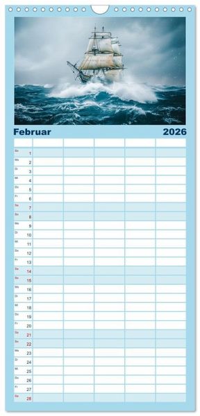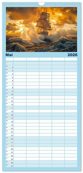 PRAKTISCH - übersichtlicher Familienkalender mit 5 Spalten für bis zu 5 Personen für mehr Struktur im Alltag - so bleiben alle Termine im Blick!ÜBERSICHTLICH - mit farblich getrennten Wochen- und Feiertagen. Die einzelnen Felder bieten genügend Platz für Eintragungen. So macht Organisieren Spaß!FANTASTISCHE BILDER - Dieser Planer ist nicht nur eine nützliche Hilfe im Alltag, sondern schmückt gleichzeitig Ihr Zuhause. Ideal auch als Geschenk.FÜR ALLE STIFTE GEEIGNET - ganz egal, ob Sie lieber mit Kugelschreiber oder Bleistift schreiben.NACHHALTIG - deutliche Abfallreduzierung durch bedarfsgerechte Einzelstückfertigung, umweltfreundliches FSC-zertifiziertes Papier, Produktion in Deutschland, klimabewusste Logistik.Mit unseren erfahrenen Kapitänen und erstklassigen Crewmitgliedern führen wir Sie auf eine Reise durch die Zeit, zurück zu den glorreichen Tagen der Seefahrt. von Autor(in): Steffen Gierok ; Magik Artist Design
