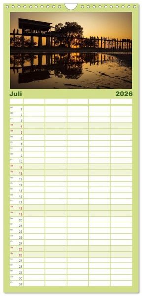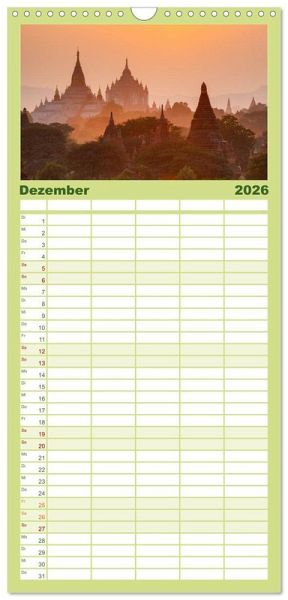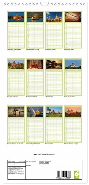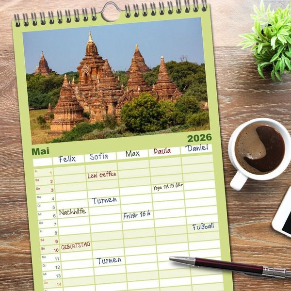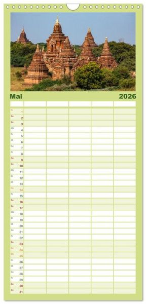 PRAKTISCH - übersichtlicher Familienkalender mit 5 Spalten für bis zu 5 Personen für mehr Struktur im Alltag - so bleiben alle Termine im Blick!ÜBERSICHTLICH - mit farblich getrennten Wochen- und Feiertagen. Die einzelnen Felder bieten genügend Platz für Eintragungen. So macht Organisieren Spaß!FANTASTISCHE BILDER - Dieser Planer ist nicht nur eine nützliche Hilfe im Alltag, sondern schmückt gleichzeitig Ihr Zuhause. Ideal auch als Geschenk.FÜR ALLE STIFTE GEEIGNET - ganz egal, ob Sie lieber mit Kugelschreiber oder Bleistift schreiben.NACHHALTIG - deutliche Abfallreduzierung durch bedarfsgerechte Einzelstückfertigung, umweltfreundliches FSC-zertifiziertes Papier, Produktion in Deutschland, klimabewusste Logistik.Eine Reise durch das wunderbare und geheimnisvolle Myanmar von Autor(in): Roland Brack