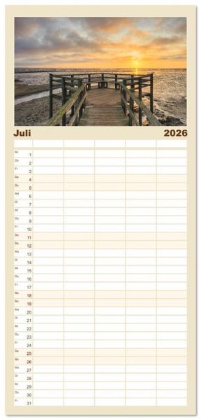 PRAKTISCH - übersichtlicher Familienkalender mit 5 Spalten für bis zu 5 Personen für mehr Struktur im Alltag - so bleiben alle Termine im Blick!ÜBERSICHTLICH - mit farblich getrennten Wochen- und Feiertagen. Die einzelnen Felder bieten genügend Platz für Eintragungen. So macht Organisieren Spaß!FANTASTISCHE BILDER - Dieser Planer ist nicht nur eine nützliche Hilfe im Alltag, sondern schmückt gleichzeitig Ihr Zuhause. Ideal auch als Geschenk.FÜR ALLE STIFTE GEEIGNET - ganz egal, ob Sie lieber mit Kugelschreiber oder Bleistift schreiben.NACHHALTIG - deutliche Abfallreduzierung durch bedarfsgerechte Einzelstückfertigung, umweltfreundliches FSC-zertifiziertes Papier, Produktion in Deutschland, klimabewusste Logistik.Lassen Sie sich verzaubern von der einzigartigen Schönheit Amrums von Autor(in): Michael Valjak