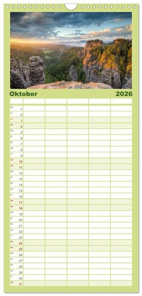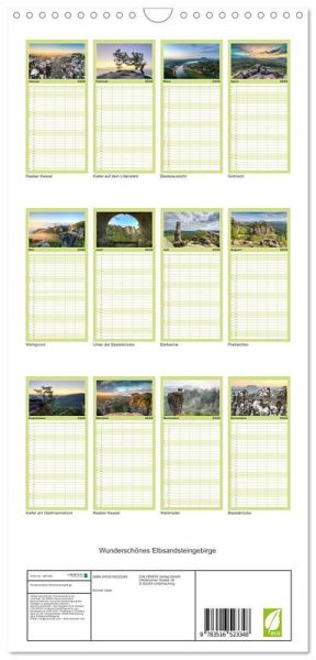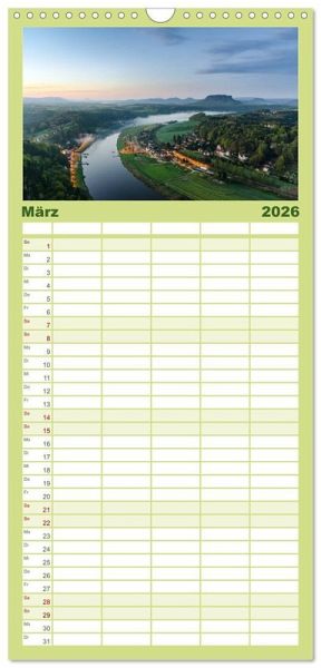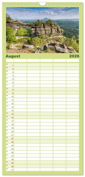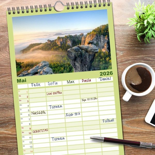 PRAKTISCH - übersichtlicher Familienkalender mit 5 Spalten für bis zu 5 Personen für mehr Struktur im Alltag - so bleiben alle Termine im Blick!ÜBERSICHTLICH - mit farblich getrennten Wochen- und Feiertagen. Die einzelnen Felder bieten genügend Platz für Eintragungen. So macht Organisieren Spaß!FANTASTISCHE BILDER - Dieser Planer ist nicht nur eine nützliche Hilfe im Alltag, sondern schmückt gleichzeitig Ihr Zuhause. Ideal auch als Geschenk.FÜR ALLE STIFTE GEEIGNET - ganz egal, ob Sie lieber mit Kugelschreiber oder Bleistift schreiben.NACHHALTIG - deutliche Abfallreduzierung durch bedarfsgerechte Einzelstückfertigung, umweltfreundliches FSC-zertifiziertes Papier, Produktion in Deutschland, klimabewusste Logistik.Erleben Sie die Schönheit des Elbsandsteingebirges. von Autor(in): Michael Valjak
