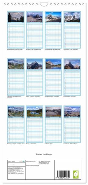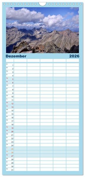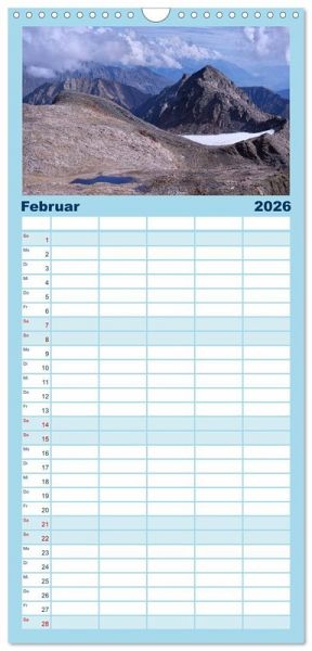 PRAKTISCH - übersichtlicher Familienkalender mit 5 Spalten für bis zu 5 Personen für mehr Struktur im Alltag - so bleiben alle Termine im Blick!ÜBERSICHTLICH - mit farblich getrennten Wochen- und Feiertagen. Die einzelnen Felder bieten genügend Platz für Eintragungen. So macht Organisieren Spaß!FANTASTISCHE BILDER - Dieser Planer ist nicht nur eine nützliche Hilfe im Alltag, sondern schmückt gleichzeitig Ihr Zuhause. Ideal auch als Geschenk.FÜR ALLE STIFTE GEEIGNET - ganz egal, ob Sie lieber mit Kugelschreiber oder Bleistift schreiben.NACHHALTIG - deutliche Abfallreduzierung durch bedarfsgerechte Einzelstückfertigung, umweltfreundliches FSC-zertifiziertes Papier, Produktion in Deutschland, klimabewusste Logistik.Ein Streifzug durch eine beeindruckende Bergwelt von Autor(in): Michael Kehl