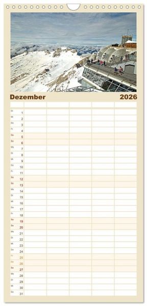 PRAKTISCH - übersichtlicher Familienkalender mit 5 Spalten für bis zu 5 Personen für mehr Struktur im Alltag - so bleiben alle Termine im Blick!ÜBERSICHTLICH - mit farblich getrennten Wochen- und Feiertagen. Die einzelnen Felder bieten genügend Platz für Eintragungen. So macht Organisieren Spaß!FANTASTISCHE BILDER - Dieser Planer ist nicht nur eine nützliche Hilfe im Alltag, sondern schmückt gleichzeitig Ihr Zuhause. Ideal auch als Geschenk.FÜR ALLE STIFTE GEEIGNET - ganz egal, ob Sie lieber mit Kugelschreiber oder Bleistift schreiben.NACHHALTIG - deutliche Abfallreduzierung durch bedarfsgerechte Einzelstückfertigung, umweltfreundliches FSC-zertifiziertes Papier, Produktion in Deutschland, klimabewusste Logistik.Die Gegend rund um die Zugspitze von Autor(in): Christine Wirges