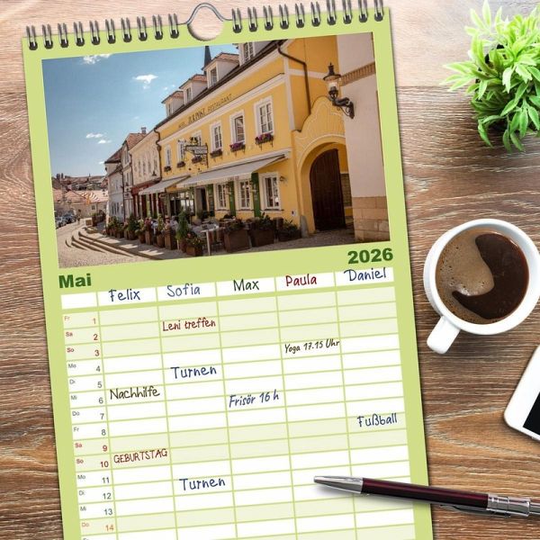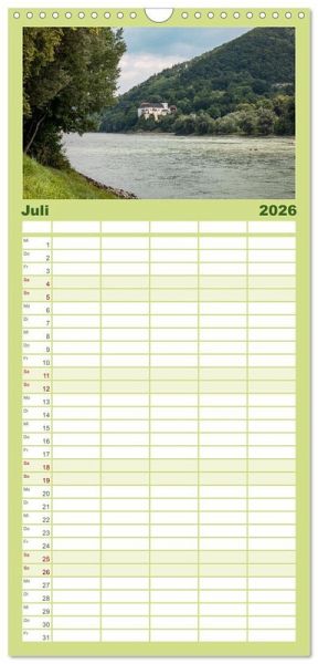PRAKTISCH - übersichtlicher Familienkalender mit 5 Spalten für bis zu 5 Personen für mehr Struktur im Alltag - so bleiben alle Termine im Blick!ÜBERSICHTLICH - mit farblich getrennten Wochen- und Feiertagen. Die einzelnen Felder bieten genügend Platz für Eintragungen. So macht Organisieren Spaß!FANTASTISCHE BILDER - Dieser Planer ist nicht nur eine nützliche Hilfe im Alltag, sondern schmückt gleichzeitig Ihr Zuhause. Ideal auch als Geschenk.FÜR ALLE STIFTE GEEIGNET - ganz egal, ob Sie lieber mit Kugelschreiber oder Bleistift schreiben.NACHHALTIG - deutliche Abfallreduzierung durch bedarfsgerechte Einzelstückfertigung, umweltfreundliches FSC-zertifiziertes Papier, Produktion in Deutschland, klimabewusste Logistik.Wunderschöne Landschaft entlang der Donau von Autor(in): saschahaas photography