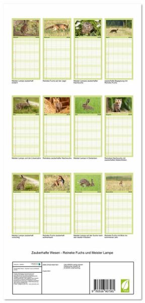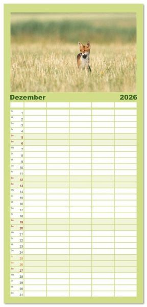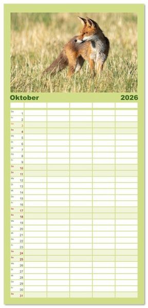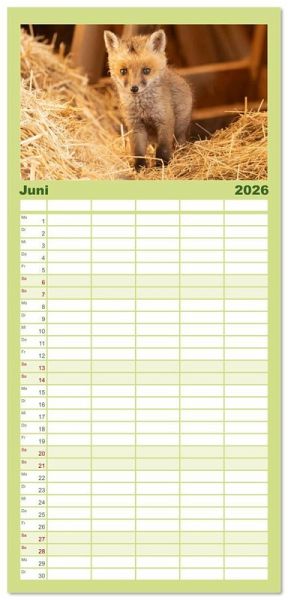 PRAKTISCH - übersichtlicher Familienkalender mit 5 Spalten für bis zu 5 Personen für mehr Struktur im Alltag - so bleiben alle Termine im Blick!ÜBERSICHTLICH - mit farblich getrennten Wochen- und Feiertagen. Die einzelnen Felder bieten genügend Platz für Eintragungen. So macht Organisieren Spaß!FANTASTISCHE BILDER - Dieser Planer ist nicht nur eine nützliche Hilfe im Alltag, sondern schmückt gleichzeitig Ihr Zuhause. Ideal auch als Geschenk.FÜR ALLE STIFTE GEEIGNET - ganz egal, ob Sie lieber mit Kugelschreiber oder Bleistift schreiben.NACHHALTIG - deutliche Abfallreduzierung durch bedarfsgerechte Einzelstückfertigung, umweltfreundliches FSC-zertifiziertes Papier, Produktion in Deutschland, klimabewusste Logistik.Zauberhafte Fotos von Fuchs und Feldhase in freier Natur. von Autor(in): Angela Merk