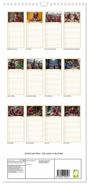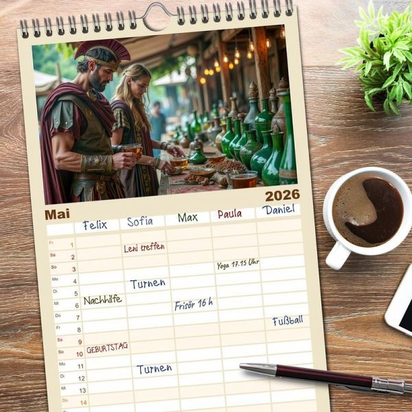 PRAKTISCH - übersichtlicher Familienkalender mit 5 Spalten für bis zu 5 Personen für mehr Struktur im Alltag - so bleiben alle Termine im Blick!ÜBERSICHTLICH - mit farblich getrennten Wochen- und Feiertagen. Die einzelnen Felder bieten genügend Platz für Eintragungen. So macht Organisieren Spaß!FANTASTISCHE BILDER - Dieser Planer ist nicht nur eine nützliche Hilfe im Alltag, sondern schmückt gleichzeitig Ihr Zuhause. Ideal auch als Geschenk.FÜR ALLE STIFTE GEEIGNET - ganz egal, ob Sie lieber mit Kugelschreiber oder Bleistift schreiben.NACHHALTIG - deutliche Abfallreduzierung durch bedarfsgerechte Einzelstückfertigung, umweltfreundliches FSC-zertifiziertes Papier, Produktion in Deutschland, klimabewusste Logistik.Szenen aus dem Leben im antiken Rom von Autor(in): Alain Gaymard