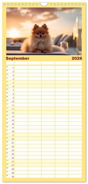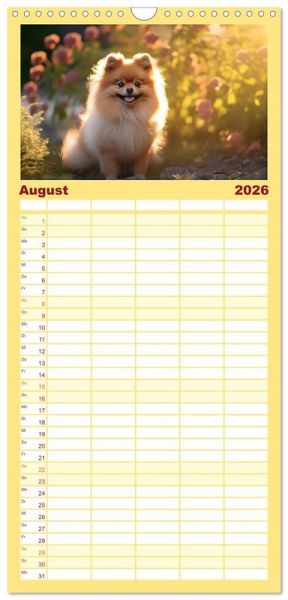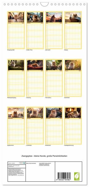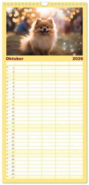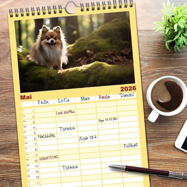 PRAKTISCH - übersichtlicher Familienkalender mit 5 Spalten für bis zu 5 Personen für mehr Struktur im Alltag - so bleiben alle Termine im Blick!ÜBERSICHTLICH - mit farblich getrennten Wochen- und Feiertagen. Die einzelnen Felder bieten genügend Platz für Eintragungen. So macht Organisieren Spaß!FANTASTISCHE BILDER - Dieser Planer ist nicht nur eine nützliche Hilfe im Alltag, sondern schmückt gleichzeitig Ihr Zuhause. Ideal auch als Geschenk.FÜR ALLE STIFTE GEEIGNET - ganz egal, ob Sie lieber mit Kugelschreiber oder Bleistift schreiben.NACHHALTIG - deutliche Abfallreduzierung durch bedarfsgerechte Einzelstückfertigung, umweltfreundliches FSC-zertifiziertes Papier, Produktion in Deutschland, klimabewusste Logistik.Charmante Miniaturhunde in wundervollen Szenen von Autor(in): Sebastian Schneider