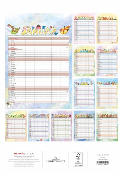 Zudem finden Sie auf den Rückseiten der Kalenderblätter weitere Hilfsmittel, wie zum Beispiel einen Pollenflugkalender oder Jahresübersichten. Der Familienplaner Cartoon 2026 der Marke Alpha Edition ist nicht nur eine sehr nützliche Hilfe im Alltag, sondern auch ein echter Blickfänger, der jeden Raum schmückt.