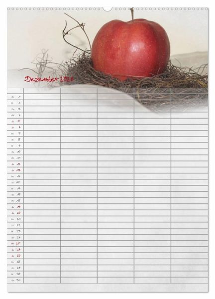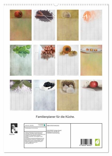 Ein praktischer Familienplaner für die Küche mit stilvollen Fotos von Obst, Gemüse, Kräutern und mehr.